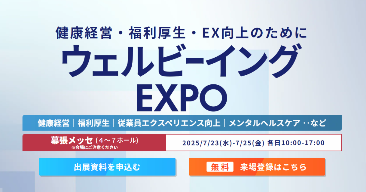 ビジネスイノベーション Japan 実行委員会が主催する展示会に「ウェルビーイングEXPO」というものがあります。(東京展、大阪展) この「ウェルビーイングEX…